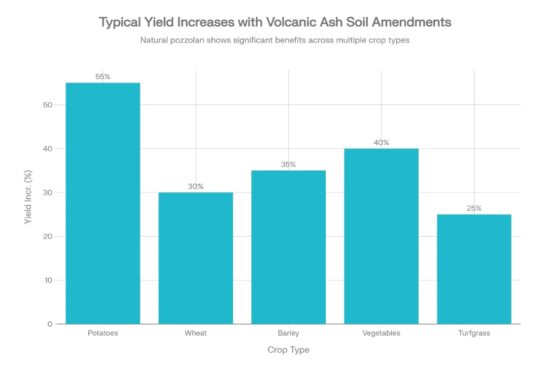 Potato yields increased 56–67% in desert agriculture applications with pozzolan mulch while dramatically cutting water consumption