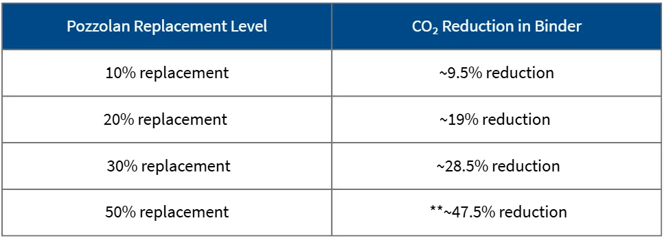 Design studies and case projects using natural pozzolan as a cement replacement demonstrate quantified CO₂ savings: